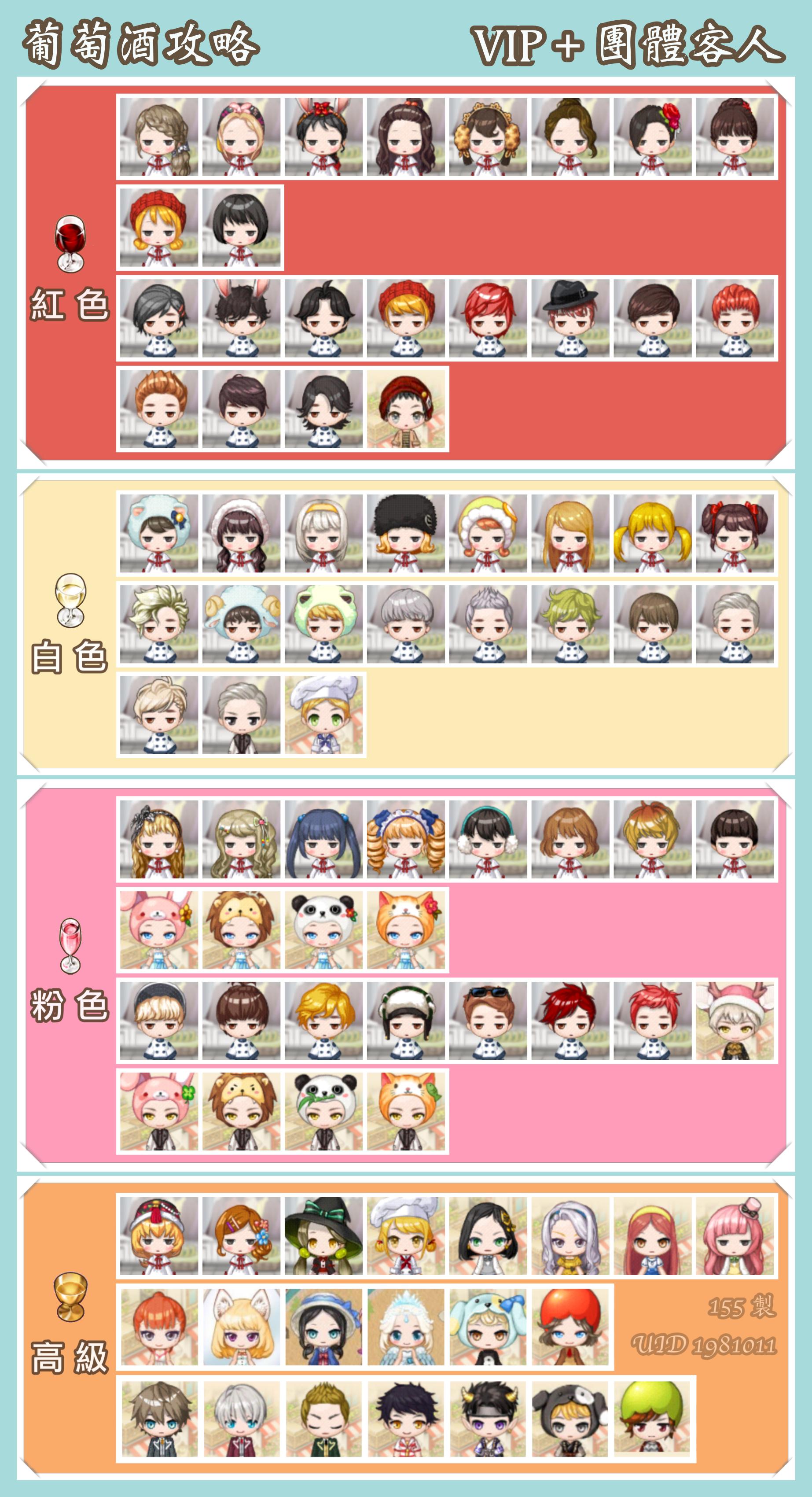*客人喝哪類酒,只要根據客人髮型判斷(與髮色無關), 給對應種類的酒(紅白粉)即可