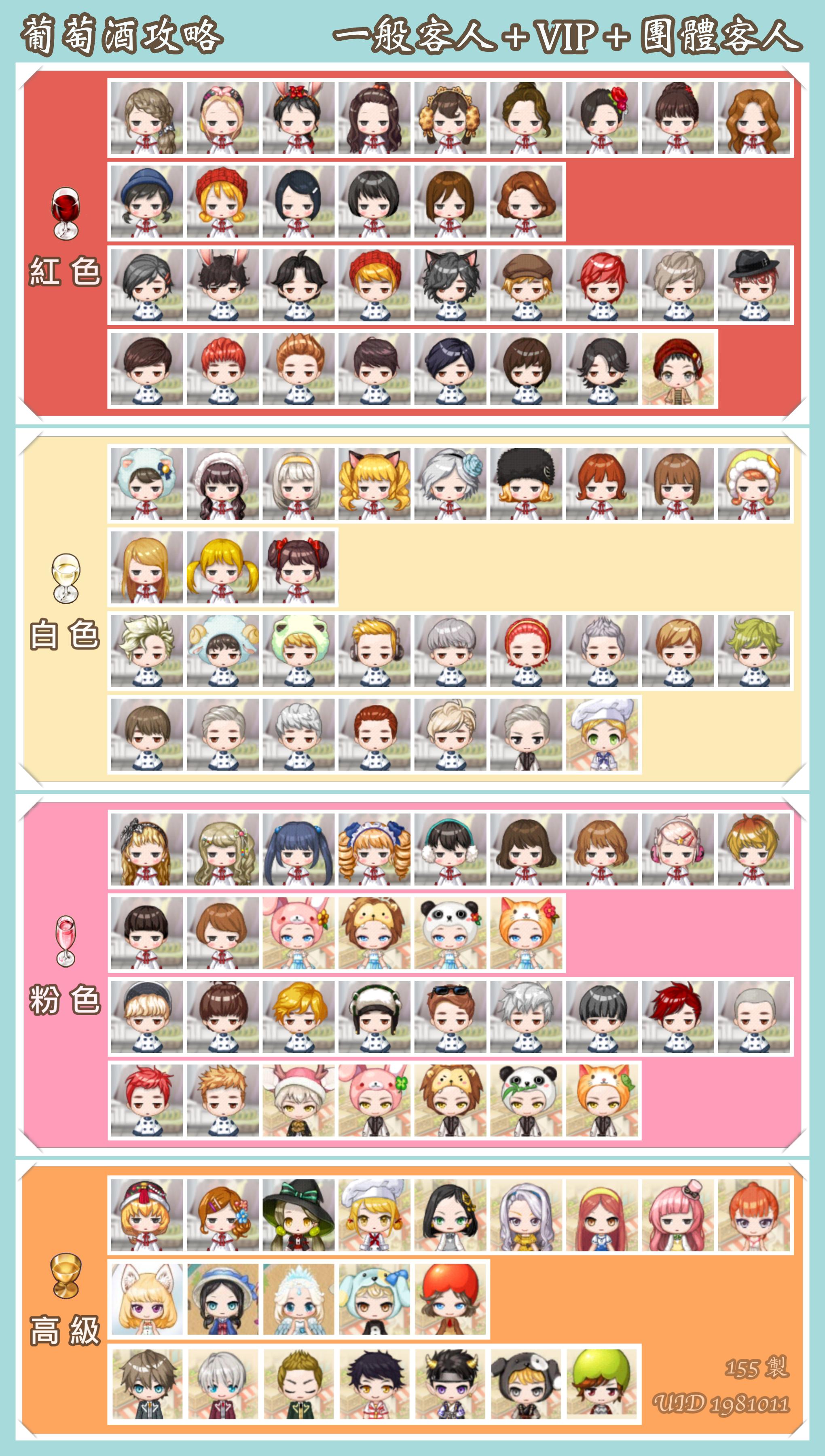 *客人喝哪類酒,只要根據客人髮型判斷(與髮色無關), 給對應種類的酒(紅白粉)即可